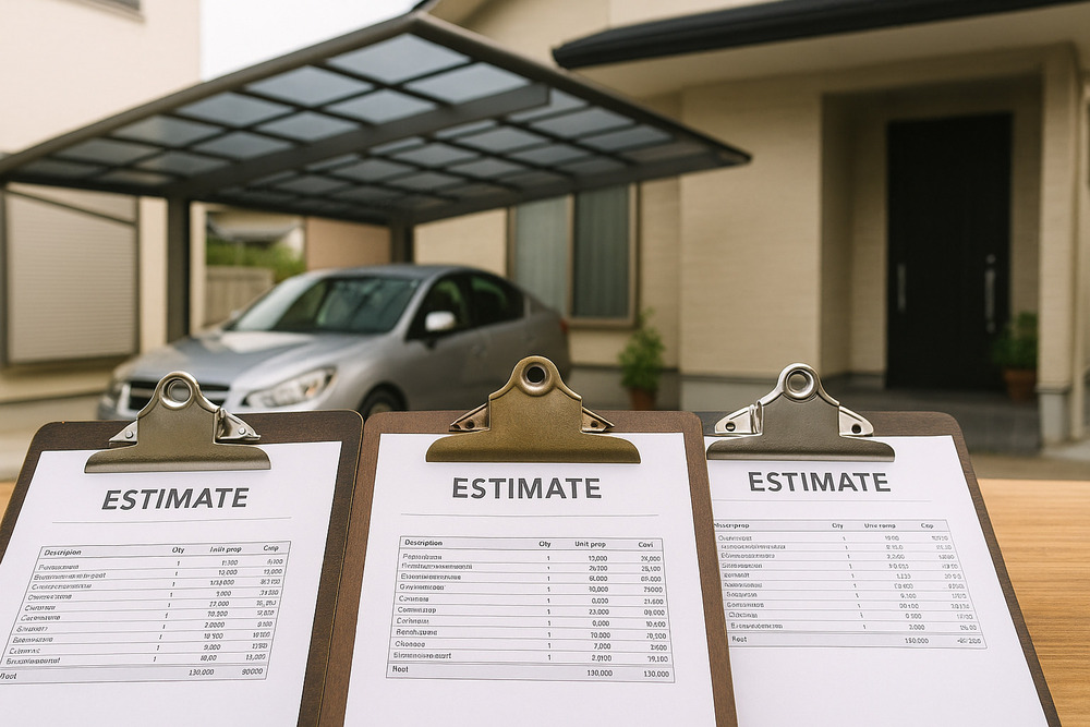 ここに加えて、既存土間のはつり・再コンクリート、既存カーポートの撤去、雨樋移設、照明・コンセント配線などの付帯工事費が乗ってきます。壁付けタイプや、構造計算を伴うような大きなカーポートは、どうしても高めになりやすいです。