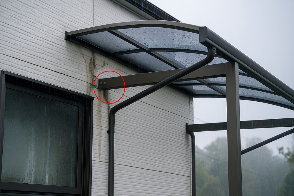 正しく施工すれば基本的に雨漏りは防げます。ただし外壁に直接ビスを打つと危険なので、家とカーポートを独立させて隙間をカバーで塞ぐ方法が安心です。