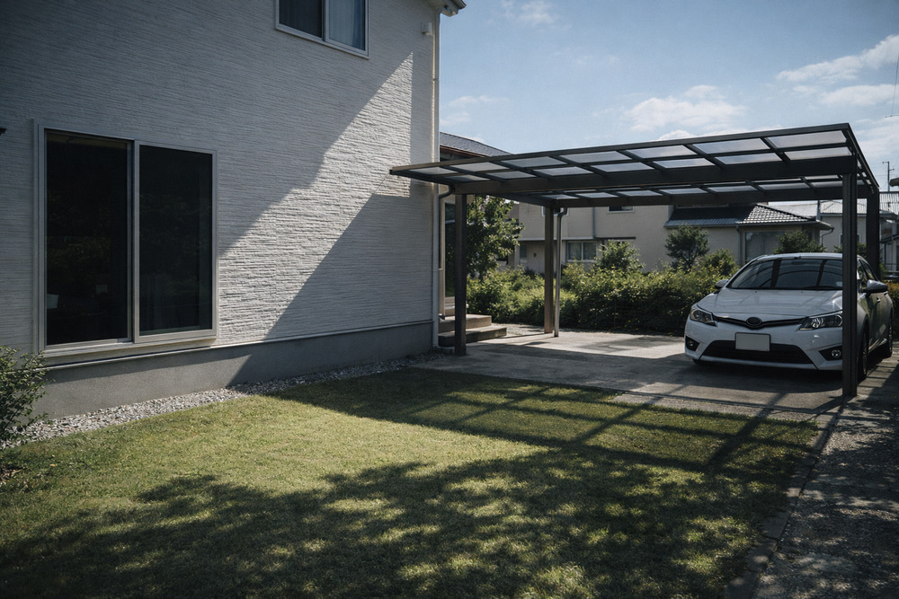 日当たりの失敗は、夏より冬に効きます。冬は太陽が低いので影が長く伸びやすく、カーポートの屋根や梁の影がリビングの窓にかぶると、体感が一気に変わります。「透明屋根にしたから大丈夫」でも、透過率は落ちるし、フレーム影は残るので、“どこに影が落ちるか”を先に想像するのがポイントです。隣家に影がかからないかも、狭い住宅街だと普通に重要になってきます。