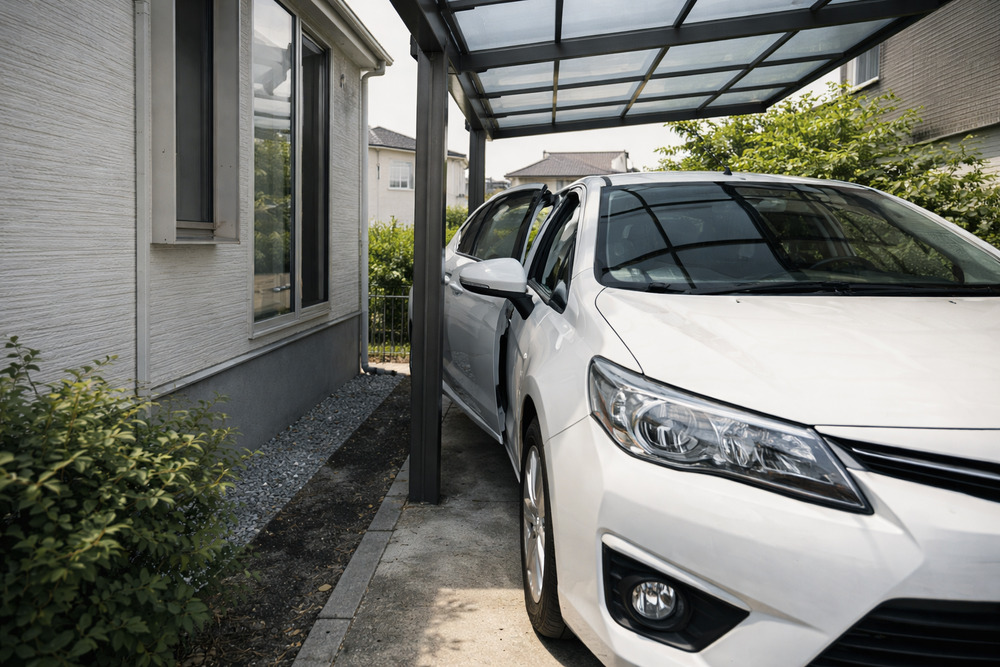 これ、地味に盲点です。今はコンパクトでも、次にSUVやミニバンにしたくなると「高さ・幅が足りない」「入るけど柱が怖い」「ドアが開けられない」が起きます。カーポートは一度建てると“車側が合わせる”ことになりやすいので、将来の車サイズも少し余裕を見ておくと安心です。