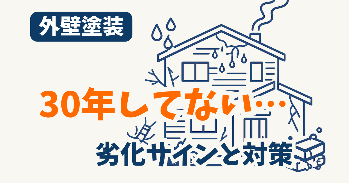 もちろん、ここに挙げたのは典型例で、外壁材(モルタル・サイディングなど)や立地(海沿い・日陰・交通量の多い道路沿い)で出方が変わります。だからこそ、見た目で「まだ大丈夫かな」と思っても、30年放置なら一度プロの目で状態確認する価値は大きいです。