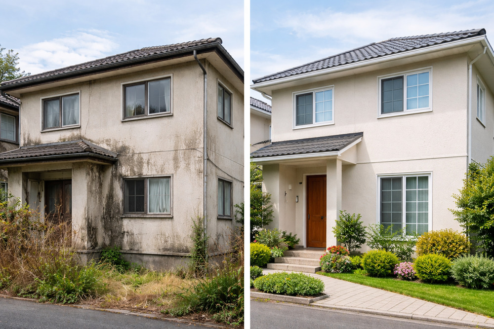 外壁の状態は見た目の問題だけじゃなくて、「この家は雨仕舞いが大丈夫そうか?」という不安にも直結します。売却や賃貸の場面では、内見で最初に目に入るのが外観です。そこで「劣化が進んでいそう」と思われると、購入者側は修繕費を見込んで値引き交渉をしてきます。つまり、外壁の傷みは将来の交渉材料になりやすいんですよね。