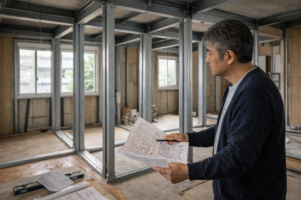 ここまで整理できると、次の見出し(工法の話)がちゃんと腹落ちするはずです。軽量鉄骨で不安が出やすい理由って、だいたい「工法に由来する前提」を知らないことが原因になりやすいので。
